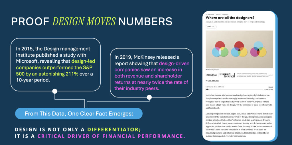 High-performing organizations understand that design is not an output — it’s a strategic input. It shapes how decisions are made, how teams align, and how customers experience a brand long before they ever click “buy.”